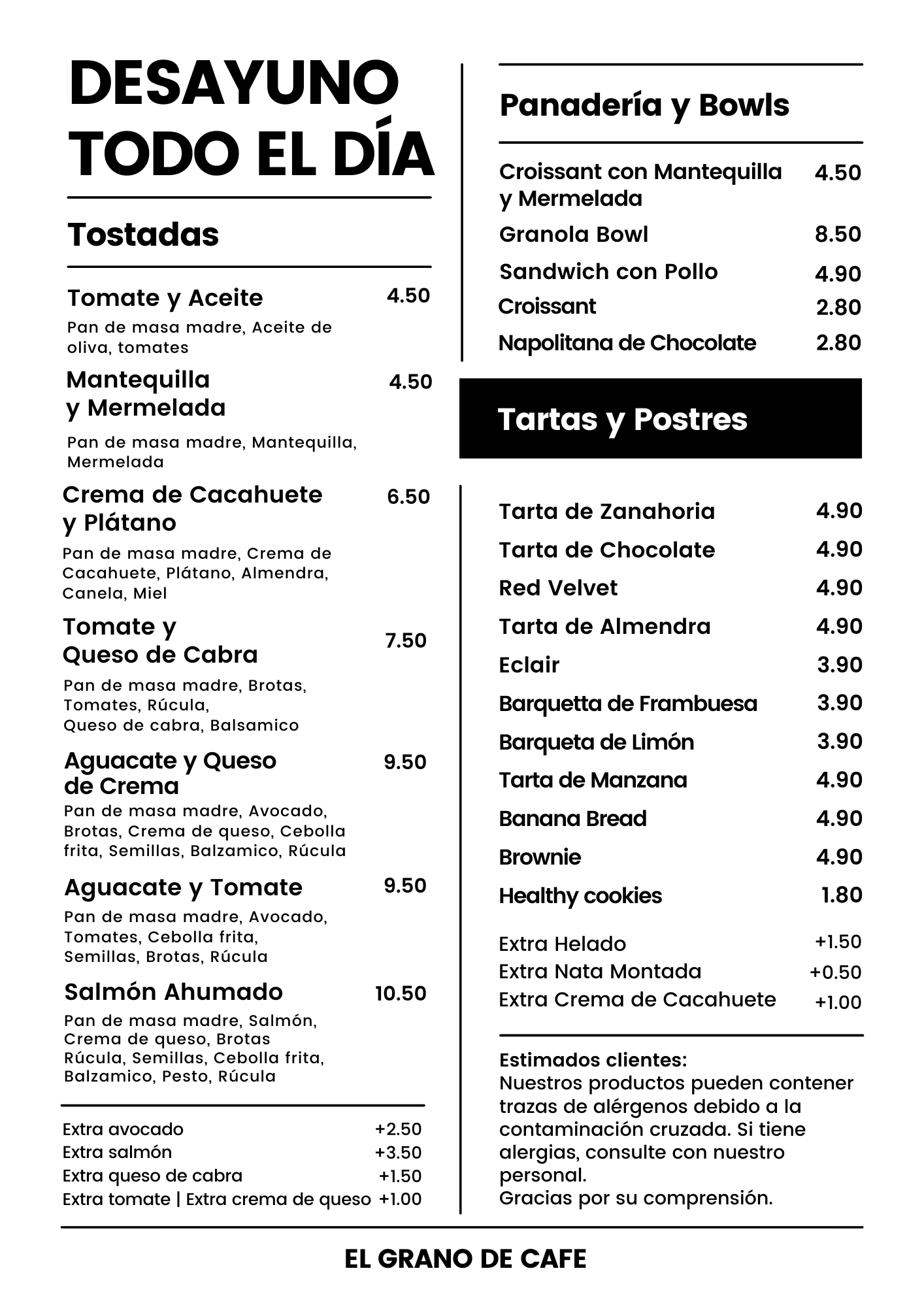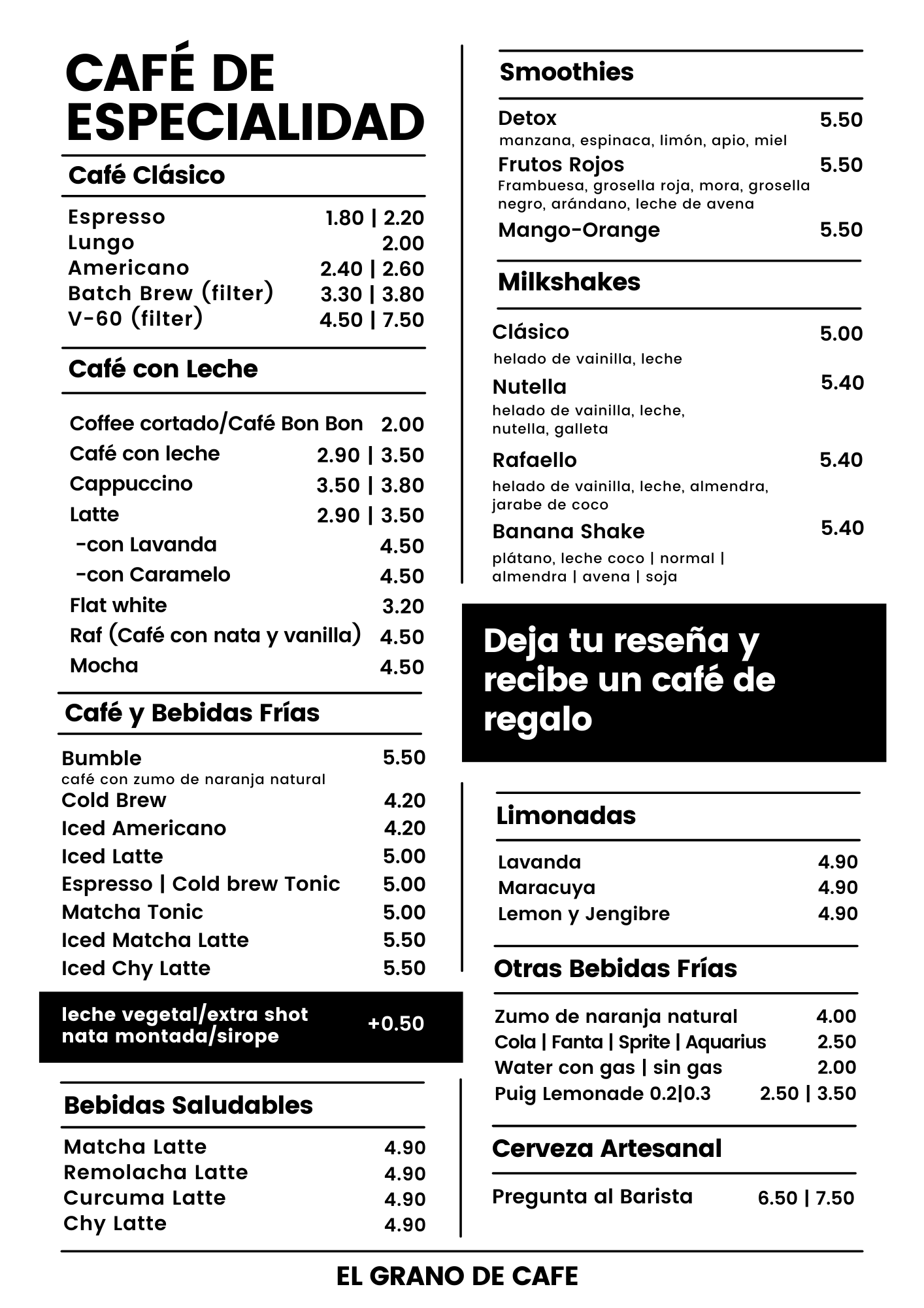 granos cumpla con altos estándares desde la selección hasta el tostado. Nuestro menú ofrece